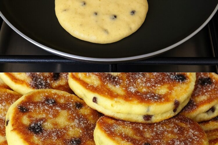 - Coloque pequenas porções da massa na frigideira, formando círculos.